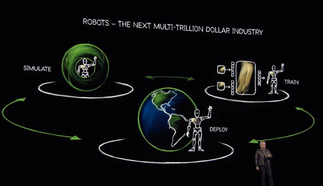 nvidia's approach: simulate first. train on synthetic data. deploy to hardware. techbuzz summarized that "robots and vehicles learn inside simulated environments that follow physical rules. actions create reactions, allowing safe testing of rare or dangerous situations."
